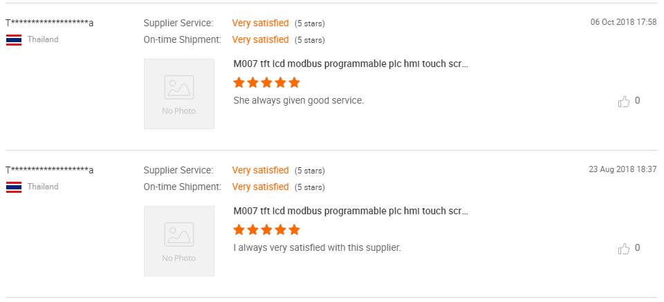 “Ela sempre atendeu bem”& “Estou sempre muito satisfeito com este fornecedor” feedback deste cliente. Muito obrigado. Esperando mais de vocês para se juntarem em Mochuan.