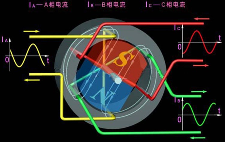 After permanent magnetic rotor is put into stator core that generates rotating magetic filed, it will synchronously spin with magnetic filed, and its speed is the same to magetic filed's. Following is just graphic to show this: