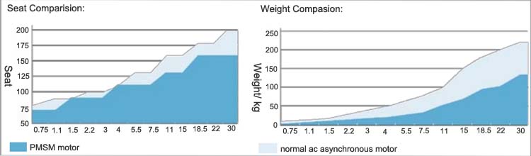 Smaller Size and Lighter Weight: compared with aynshronous motor with same power, pmsm motor is samller 1-2 stand with compacter size.
