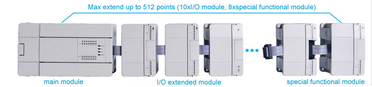 Super Extension System: MU2H series PLC Max extend up to 512points and 8pieces of special function module.