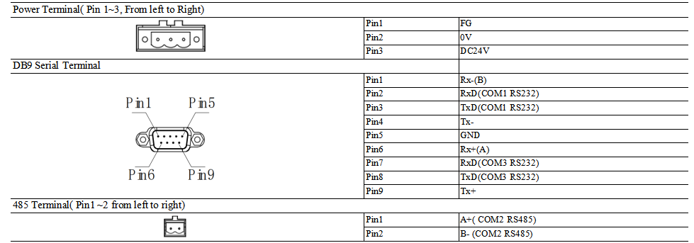 Ports | Serial Port | COM1:RS232/RS485/RS422; COM2:RS485; COM3:RS232 |