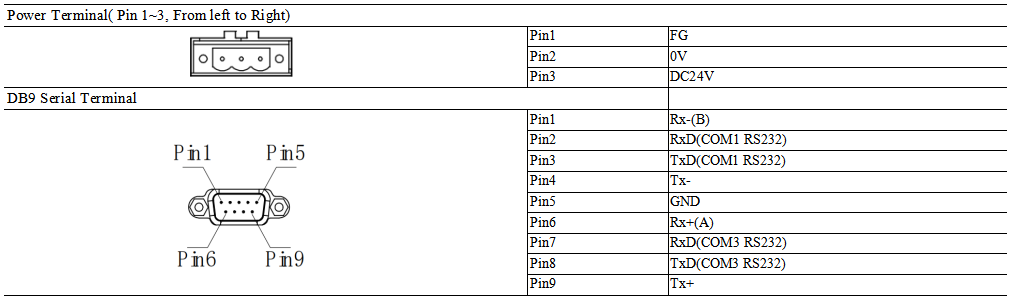 Power | Power Supply | DC24V, Working Range: DC9V~DC28V |