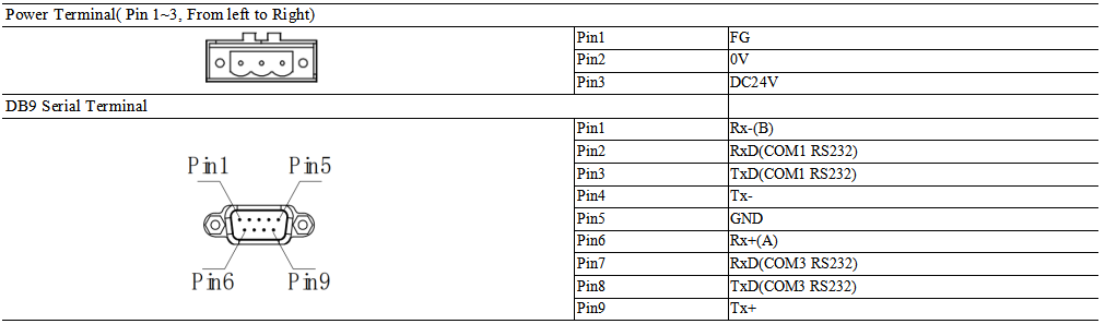 Serial Port | COM1:RS232/485/422 COM3:RS232 | COM1/COM3:RS232/485/422 COM2:RS485 | COM1:RS232/485/422 COM3:RS232 | COM1/COM3:RS232/485/422 COM2:RS485 | COM1:RS232/RS485/RS422; COM2:RS485 COM3:RS232 | |||||