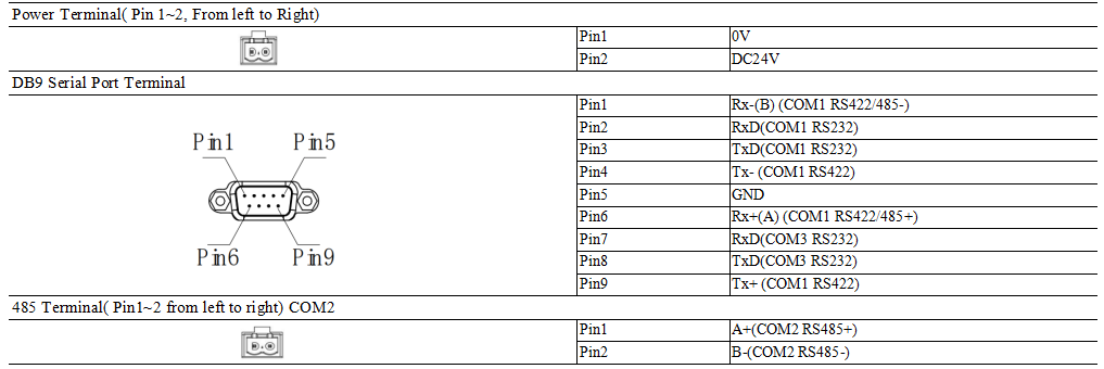 Ports | Serial Port | COM1:RS232/RS485/RS422; COM2:RS485; COM3:RS232 |