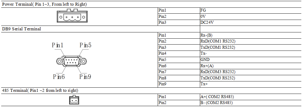 Power | Power Supply | DC24V, Working Range: DC9V~DC28V |