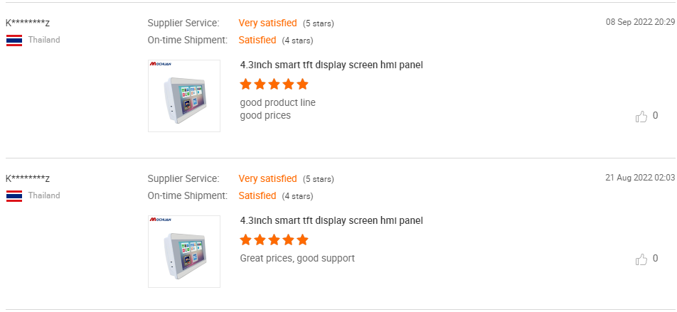 This is new customer at 2022 from Thailand. Major to undertake government projects. The first order was one small sample order started from 7inch MC-H070 HMI human machine interface. When got the sample to found, about the CPU can not meet the bidding projects parameter. After deeply communicated and recommended, to suggest and change to be 15.6inch HMI MC-H156E. After a very short time tested, 15.6inch HMI MC-H156E help customer win this bidding projects. After this, out of control, to work with us 4.3inch MC-H043S, 7inch M007 and the other size touchscreen monitor HMI.